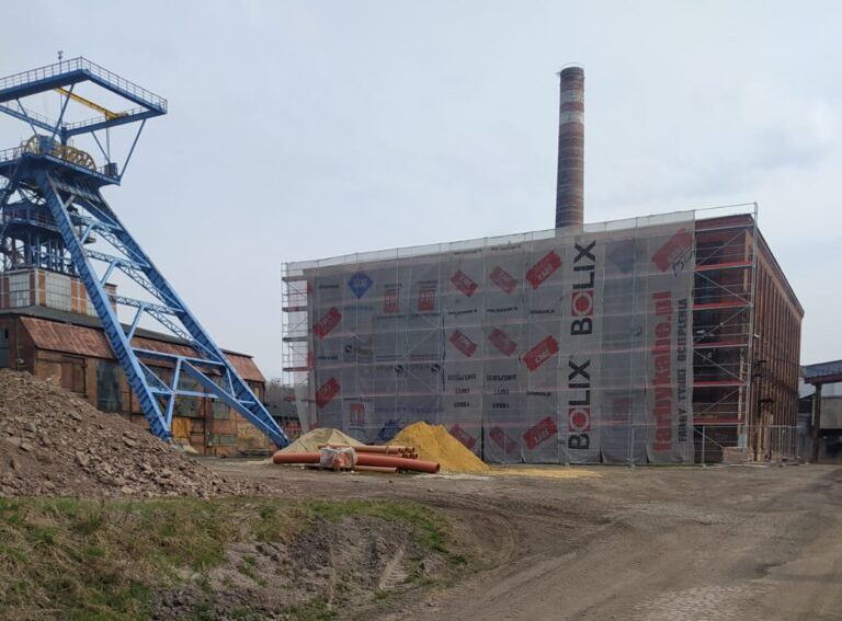 trakcie funkcjonowania kopalni. Ponadto realizowane jest uzupełnianie ubytków w elewacji oraz przygotowanie do czyszczenia historycznej ceglanej.